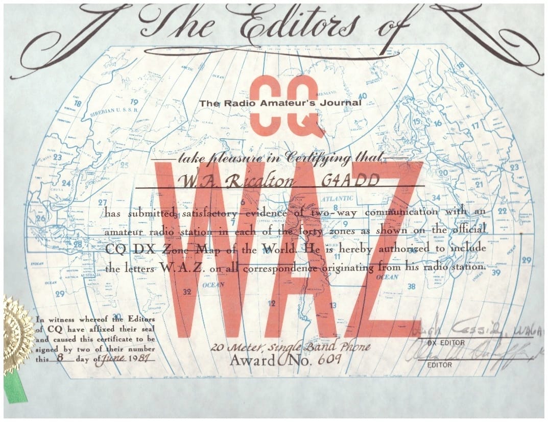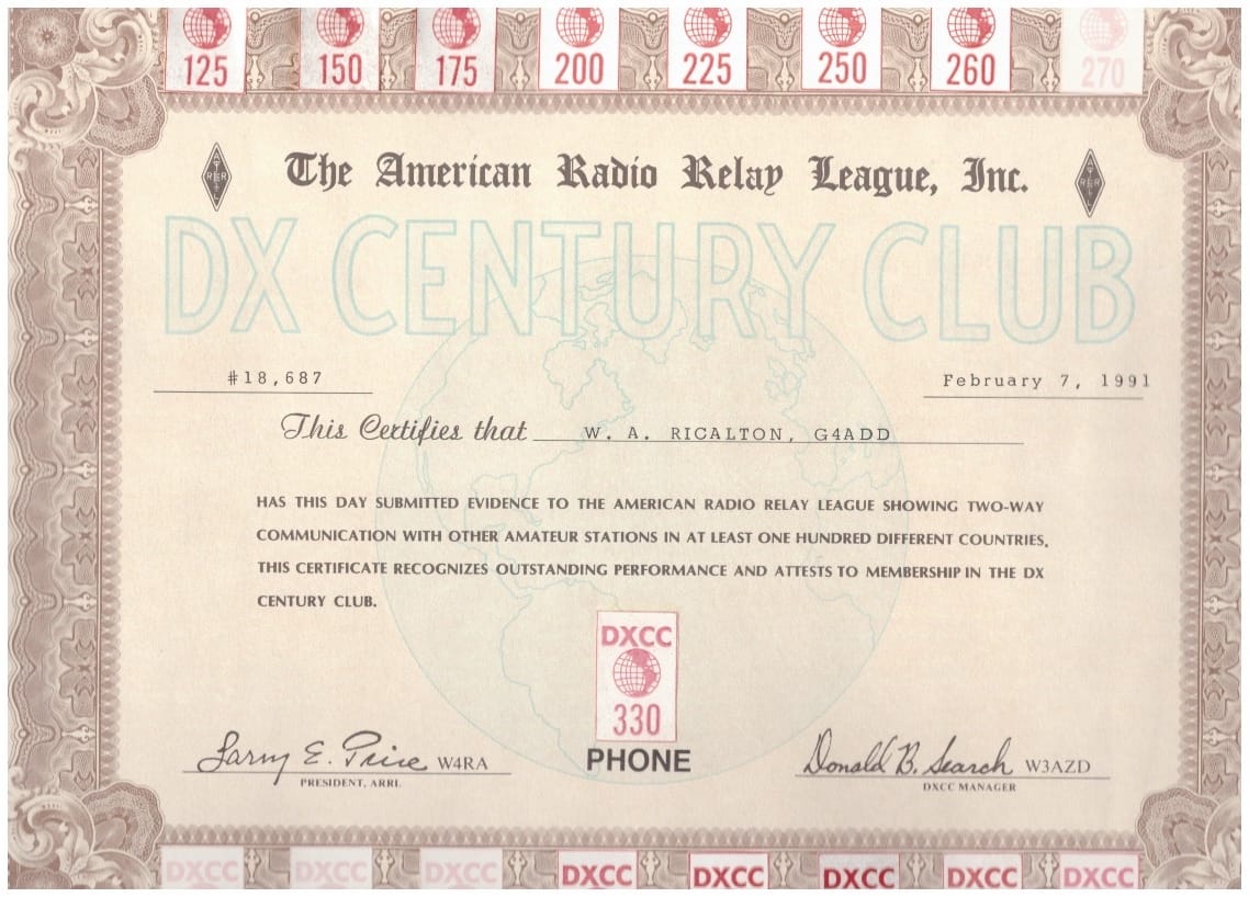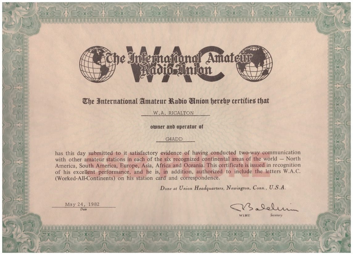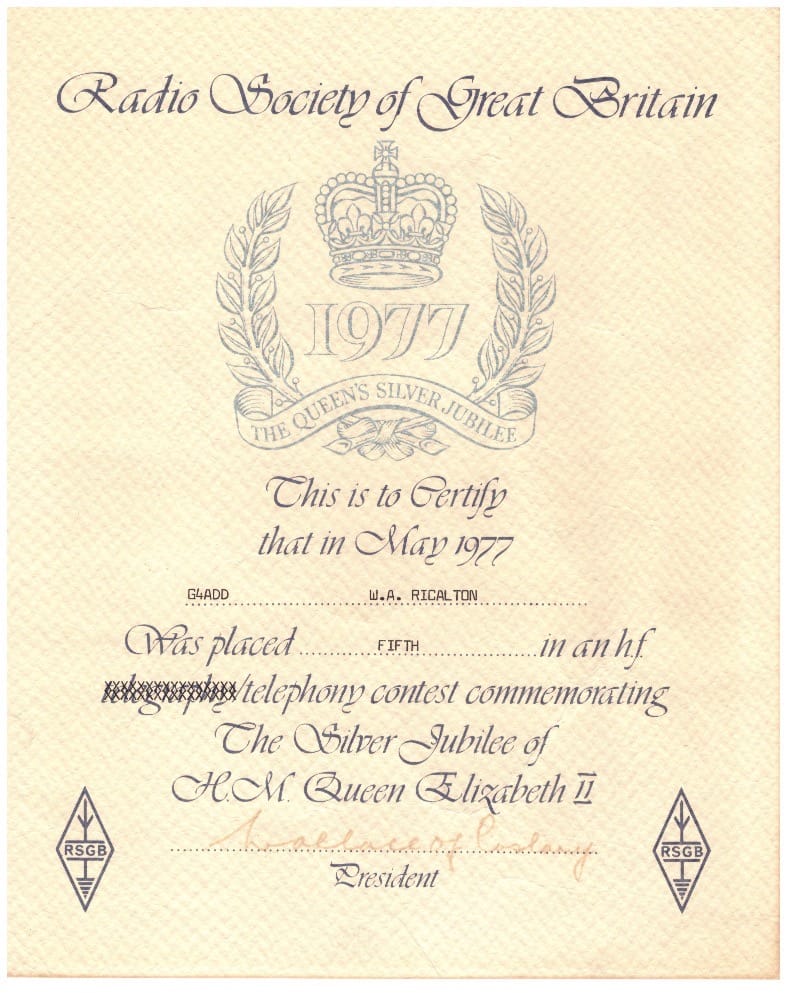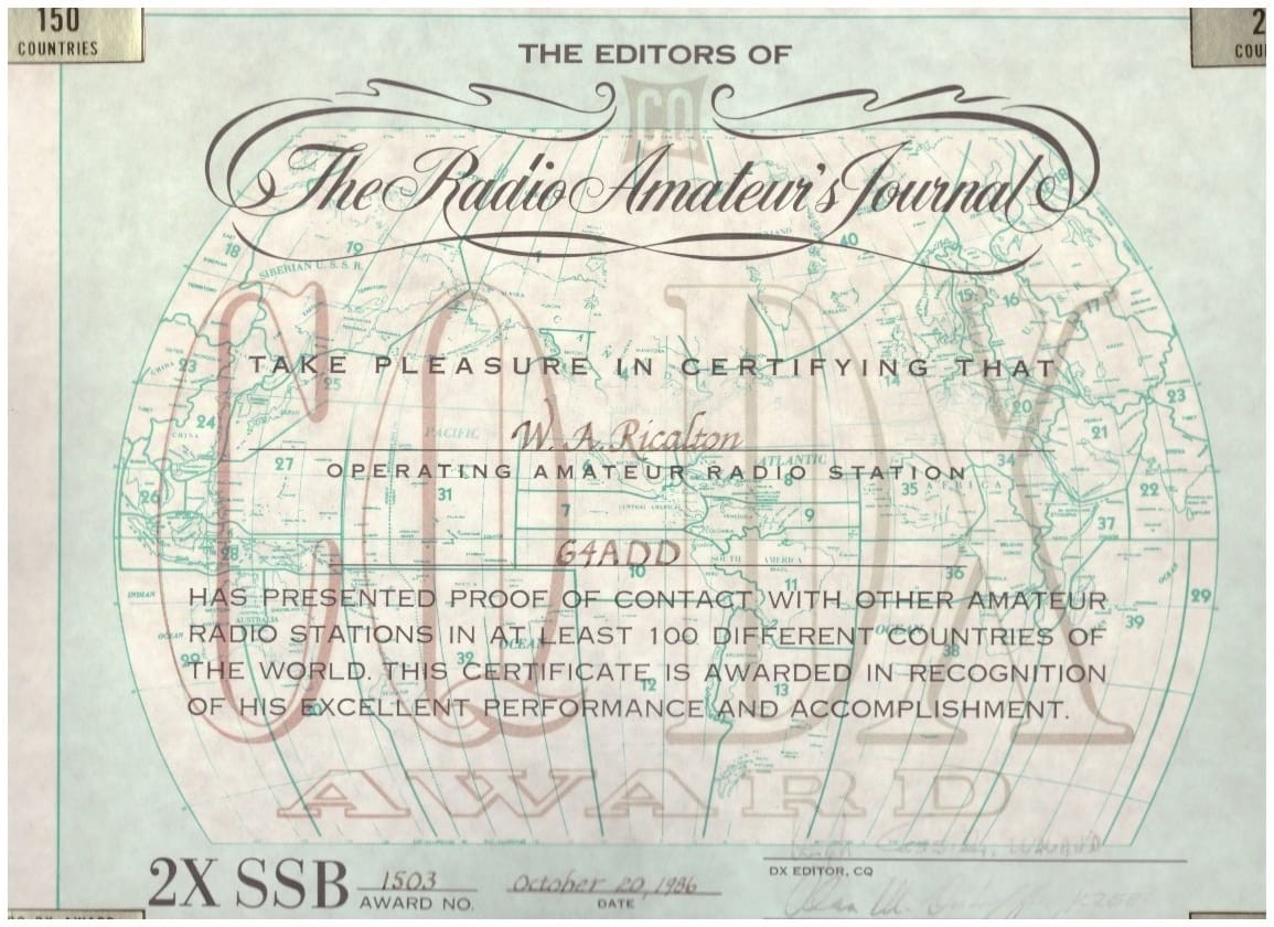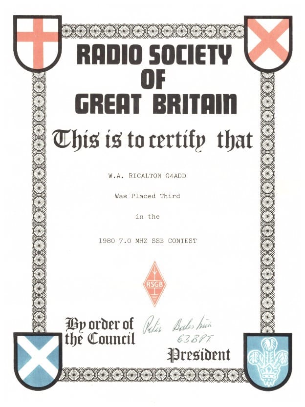 G4ADD was a founder member of N.A.R.C and very active in the 1970s and 80s , here are a number of his radio awards he gained during the time when he was active in the hobby. We also have a number of his QSL cards which will be added to the website as they are scanned .