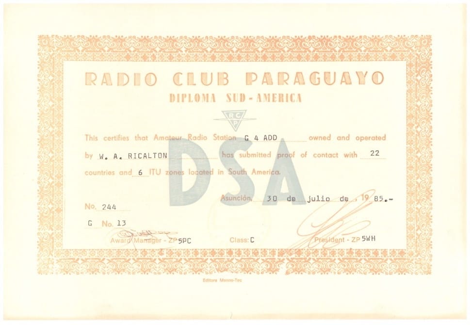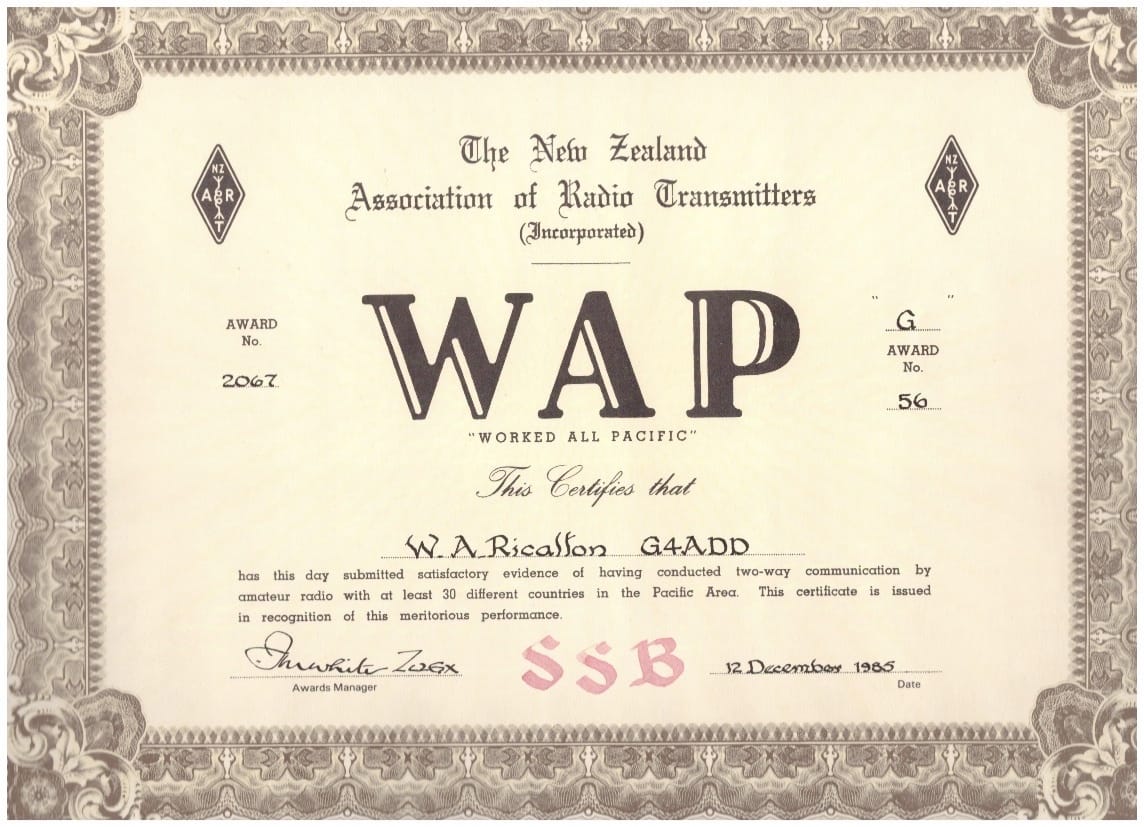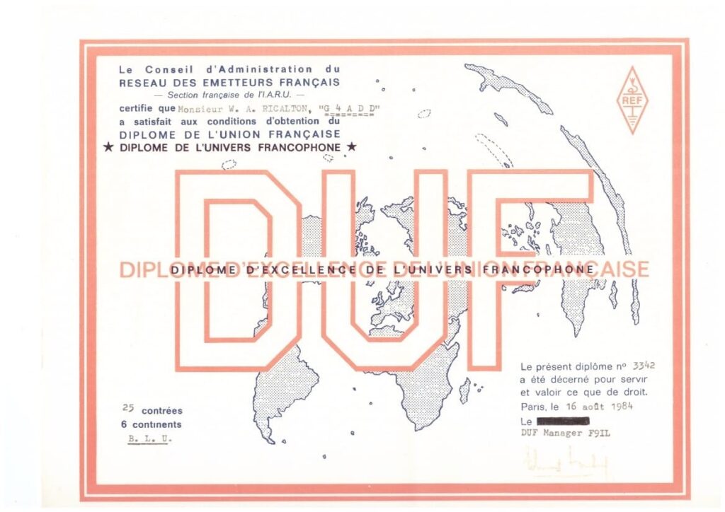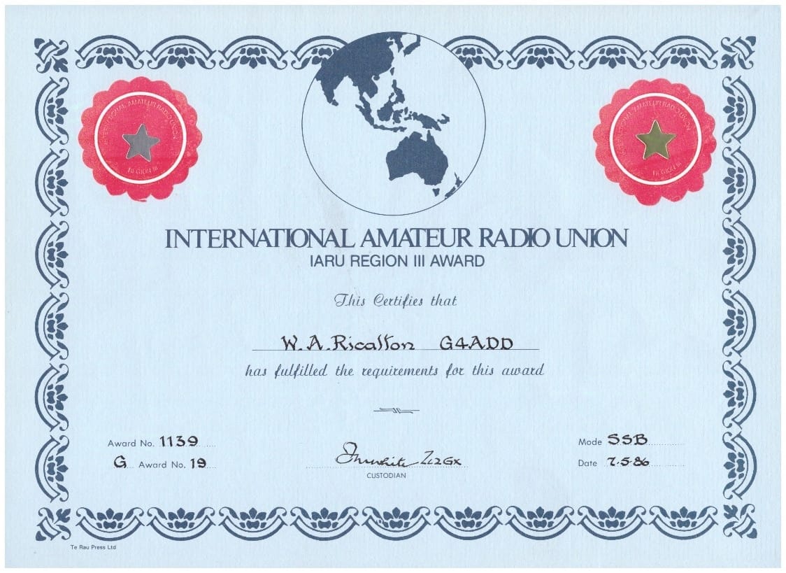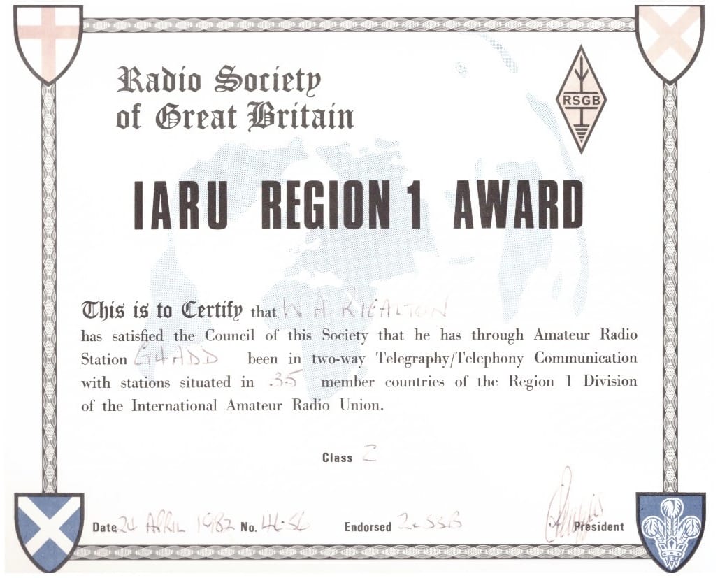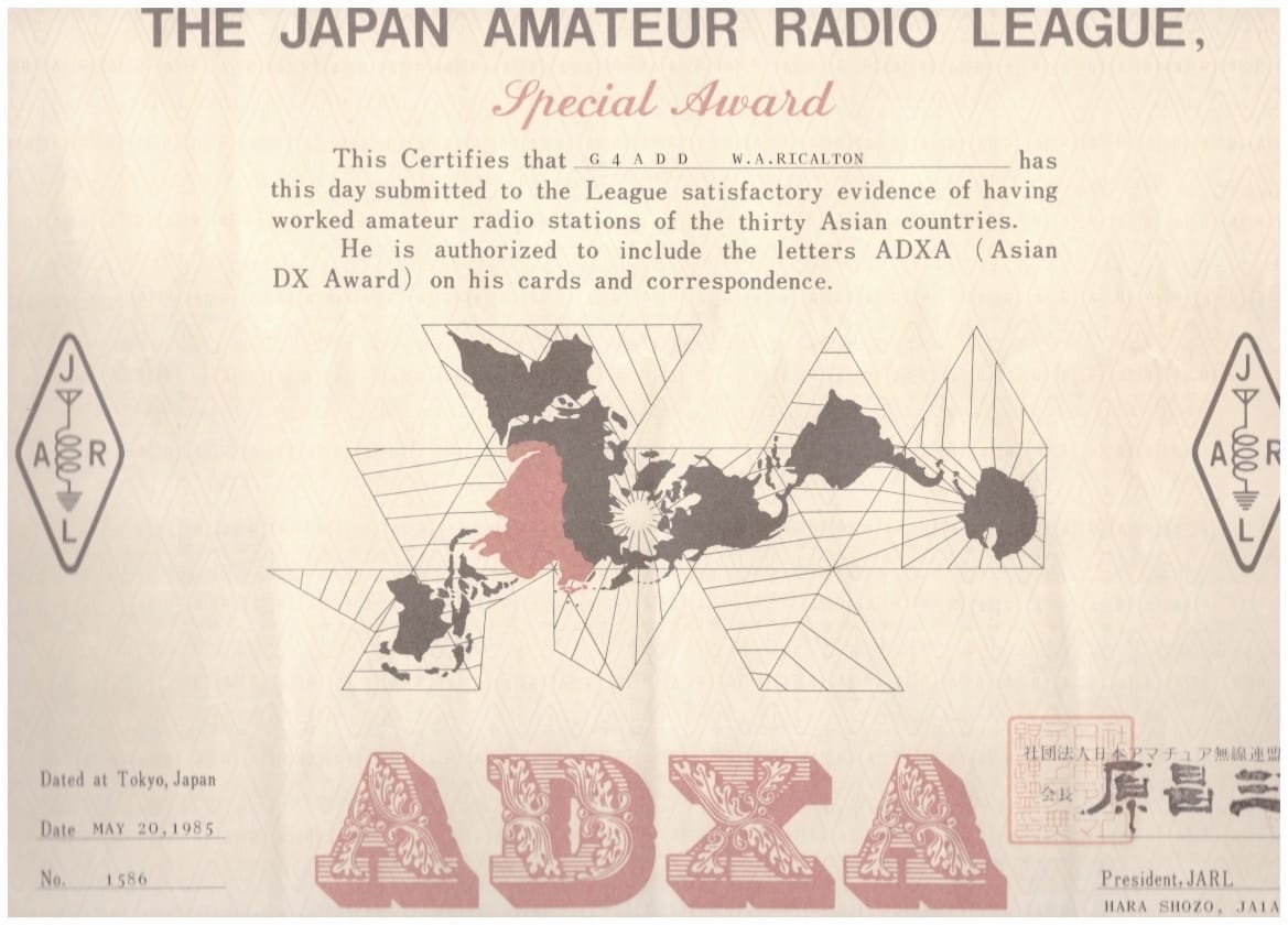 G4ADD was a founder member of N.A.R.C and very active in the 1970s and 80s , here are a number of his radio awards he gained during the time when he was active in the hobby. We also have a number of his QSL cards which will be added to the website as they are scanned .
